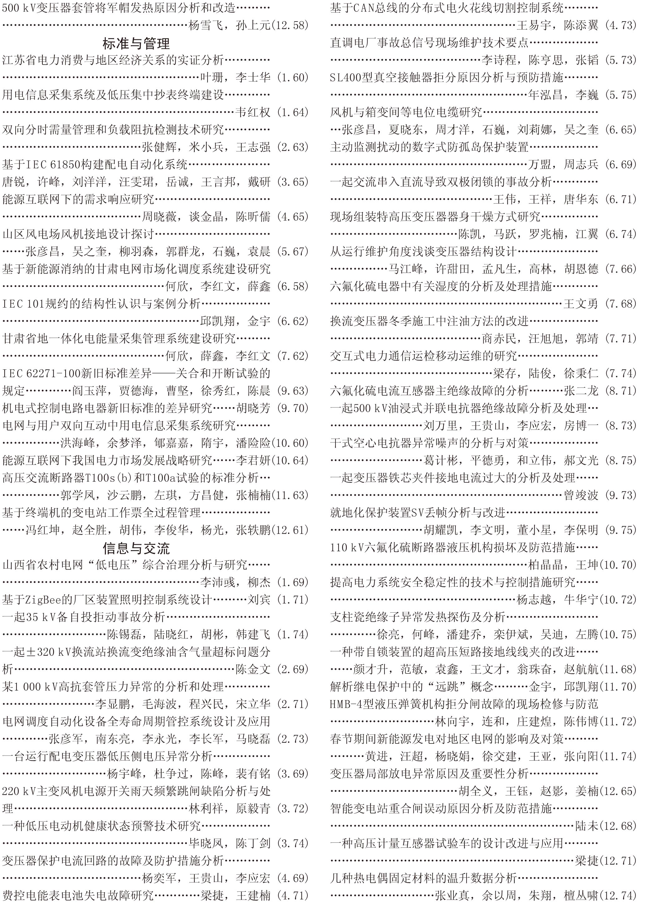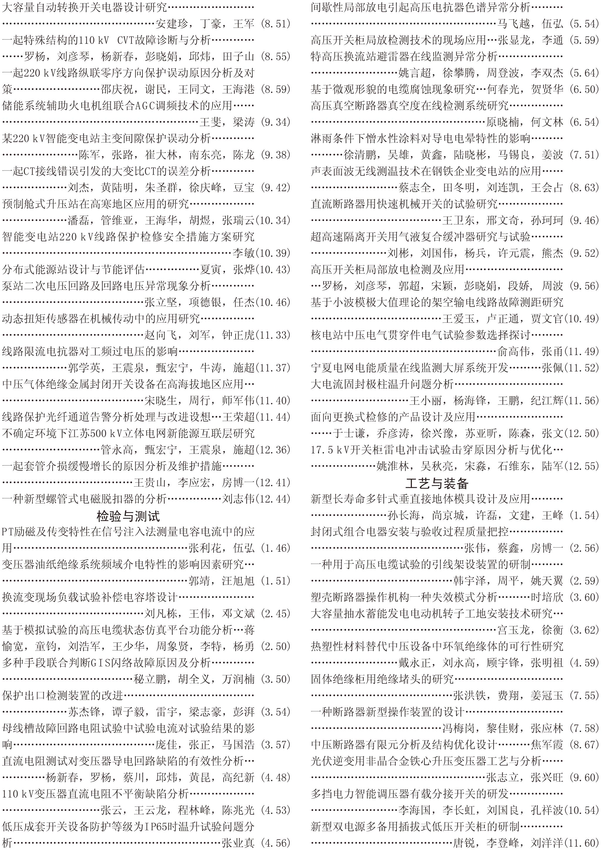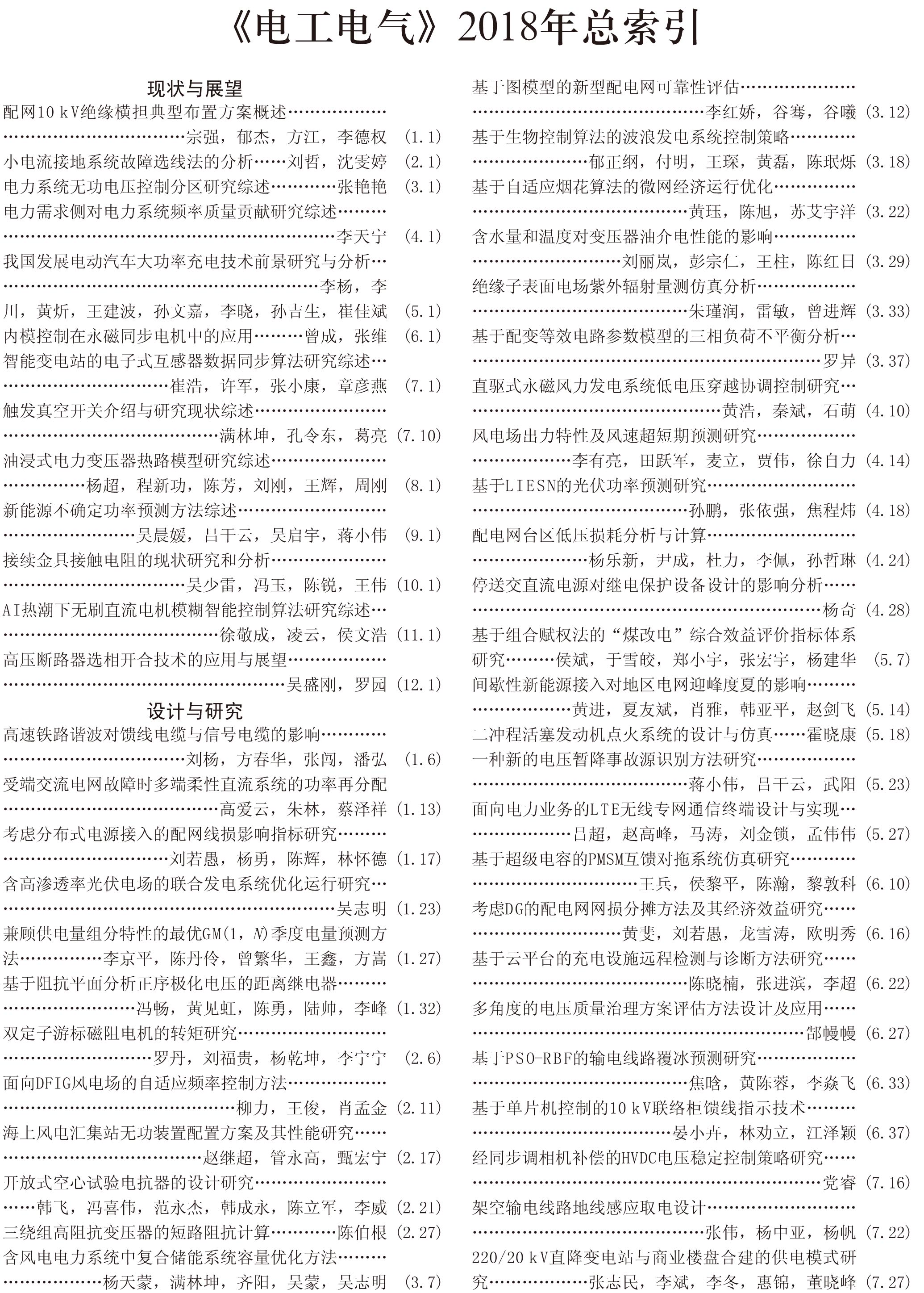 《電工電氣》2018全年總索引具體刊文如下